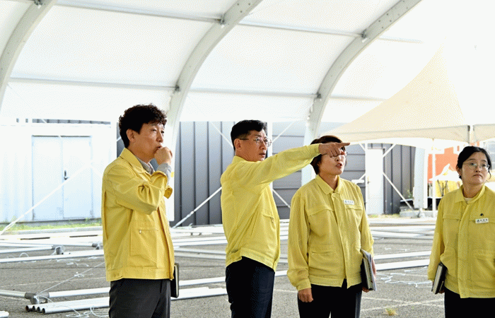 최 군수는 사과마당과 한우마당, 무대, 체험장, 편의시설 등 주요 공간을 순회하며 안전관리, 동선 확보, 응급 대응 체계 등 현장에서 발생할 수 있는 다양한 상황에 대비한 준비 상태를 꼼꼼히 점검했다.