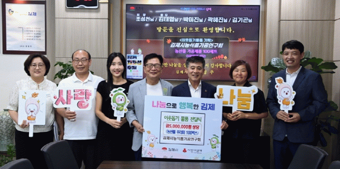 정성주 김제시장은 “뜻깊은 후원에 깊은 감사를 드리며, 이번 기부가 지역 농업의 가치를 널리 알리는 계기가 되길 바란다”며 “앞으로도 지역 사회 발전과 복지 증진을 위해 지속적으로 힘쓰겠다”고 전했다.