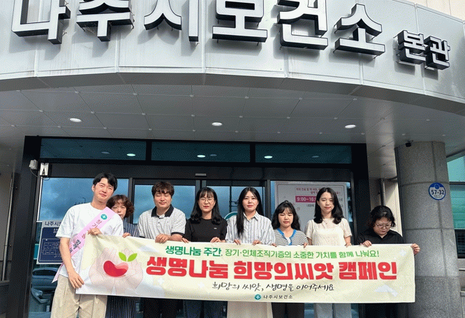 나주시 강용곤 보건소장은 “장기기증은 한 사람의 결단으로 여러 생명을 살릴 수 있는 가장 숭고한 생명나눔의 실천”이라며 “이번 생명나눔 주간을 계기로 시민들이 장기기증에 대해 관심을 두고 동참해 주시길 바란다”고 말했다.