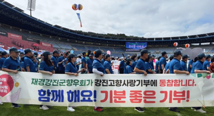 한마음 대축제에 참여한 재경강진군향우회원들은 입장식과 체육대회 등 값진 시간 내내 강진 고향사랑기부제 홍보에 앞장섰다.