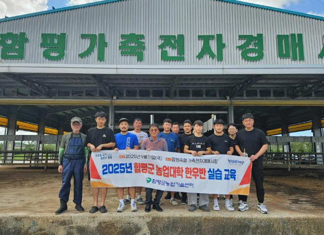함평군은 16일 “함평군 농업대학 한우반 교육생 25명이 지난 11일 함평가축전자경매시장에서 한우 자가치료 과정 현장 교육을 성공적으로 마쳤다”고 밝혔다.