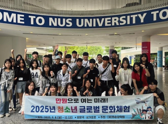 이번 연수는 화순 관내 중학교 2학년 15명, 고등학교 1학년 학생 15명, 총 30명의 학생을 대상으로 진행됐으며, 글로벌 도시 싱가포르에서의 문화‧교육 체험을 통해 학생들의 진로 탐색과 국제 역량 강화를 목적으로 마련됐다.