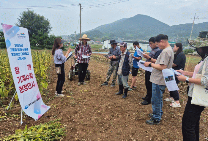 연시회에는 지역 농업인과 관계자들이 참석해 신품종 참깨의 생육 상황과 기계수확 과정을 직접 확인했다.