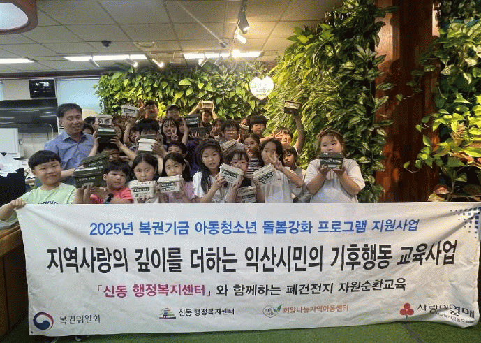 16일 익산시 신동에 따르면 익산시 희망나눔지역아동센터 아동들이 건전지를 모으고 새건전지로 교환하는 활동을 통해 자원순환의 중요성을 체험했다.