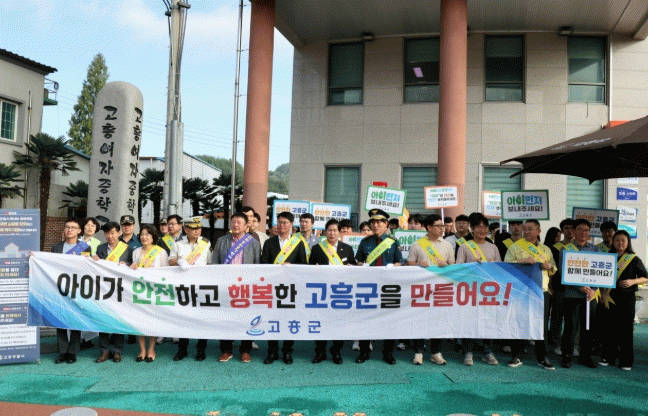 참여자들은 ‘아이가 안전하고 행복한 고흥을 만들어요!’라는 문구가 담긴 현수막과 피켓을 활용해 ▲횡단보도 앞 일단 멈춤 ▲학교 앞 30km 서행 ▲학교 주변 불법 광고물 정비 ▲건강한 먹거리 환경 조성 등 ‘아이 안전 먼저’ 메시지를 집중적으로 홍보하며 안전한 등·하굣길 문화 조성에 앞장섰다.