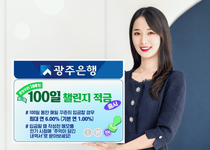 광주은행 박문수 데이터상품전략부장은 “이번 신상품은 짧은 기간이지만 꾸준한 습관을 통해 금리 혜택과 더불어 소중한 추억까지 쌓을 수 있도록 기획됐다”며, “앞으로도 MZ세대의 눈높이에 맞춘 차별화된 금융상품과 서비스를 지속적으로 선보일 계획이다”고 밝혔다.