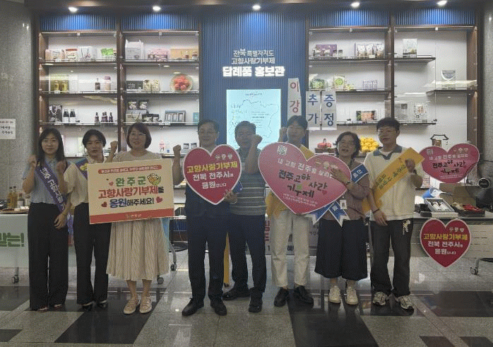 이날 현장에는 전주시 직원뿐 아니라, 전북특별자치도 직원과 완주군 직원 등 20여 명이 동참해 고향을 사랑하는 마음으로 뜻을 모아 고향사랑기부제 홍보에 임했다.