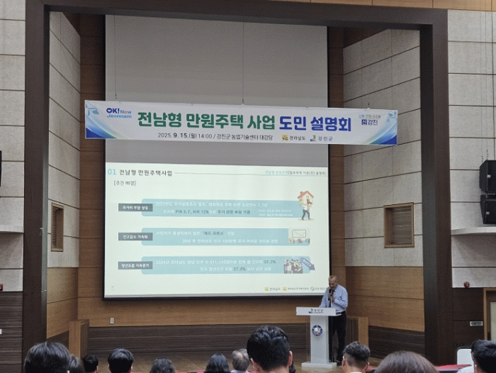 강진원 강진군수는 “이번 설명회는 군민들이 전남형 만원주택의 가치와 필요성에 깊이 공감한 뜻깊은 자리였다”며 “앞으로도 청년과 신혼부부가 안심하고 정착할 수 있는 주거 환경 조성을 위해 만원주택 사업을 차질 없이 추진하겠다”고 말했다.