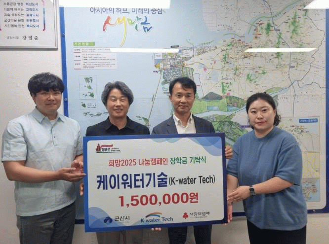 김현석 군산시 복지교육국장은 “마음을 모아 나눔 활동을 실천해주신 케이워터기술 군산사업소에 진심으로 감사드리며, 정성이 잘 전달되도록 최선을 다하겠다.”고 화답했다.