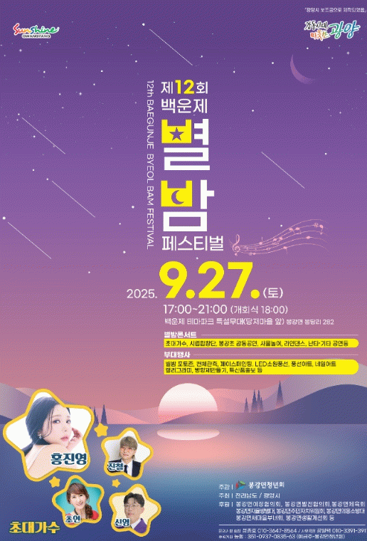 이번 축제는 전라남도와 광양시가 주최하고 봉강면 청년회가 주관하며, 주민과 관광객이 함께 가을 정취와 별빛의 낭만을 만끽할 수 있는 공연과 프로그램으로 꾸며진다.