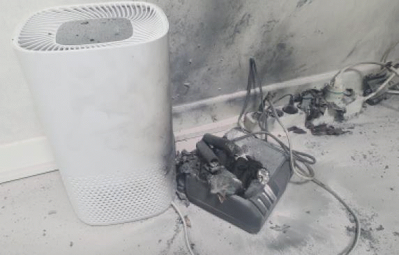충전 과정에서 4차례 ‘펑’ 하는 소리와 함께 폭발과 화염이 발생했으나, 주택용 소방시설(소화기)을 활용한 초기 진화가 가능해 인명피해는 발생하지 않았다.