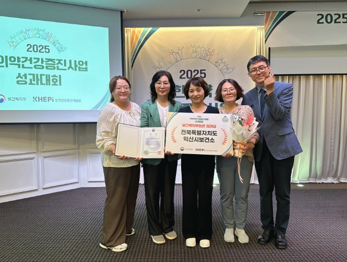 익산시 보건소는 19일 보건복지부와 한국건강증진개발원이 주최한 '한의약 건강증진 사업 성과대회'에서 보건복지부 장관상(장려상)을 받았다.