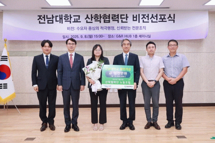 전남대 산학협력단 노동조합 김수정 지부장은 “산학협력단이 대학 내에서 새로운 신뢰를 구축하며 긍정적인 변화를 이끌어내는 주체적인 구성원이 될 수 있도록 최선을 다하겠다”며 “이번 기금은 산학협력단 구성원 모두가 대학 공동체의 중요한 일원으로서 발전과 성장에 함께 기여하겠다는 약속을 담고 있다”고 말했다.
