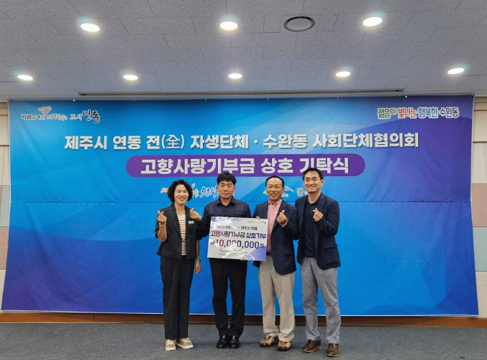 수완동은 제주시 연동과 함께 지난 19일 동행정복지센터 3층 대회의실에서 고향사랑기부금 상호기탁식을 개최했다.