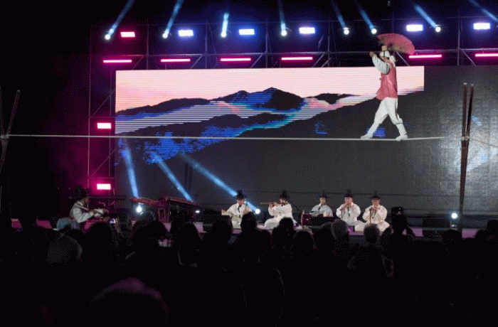 첫날 5일시장에서 펼쳐진 거리공연은 풍물과 마술로 흥을 돋우며 축제의 서막을 열었고, 둘째 날 개막제는 줄광대 공연, 명창들의 판소리, 학춤과 창작 연주가 어우러진 주제공연으로 관객들을 사로잡았다.