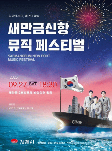 이날 무대에는 감미로운 보컬리스트 두선정, ‘통기타 대통령’으로 불리는 정환영, 국내 정상급 보컬그룹 V.O.S가 출연해 축제의 열기를 더한다. 공연 중간에는 새만금신항의 조성 현황과 무역항 지정 경과, 지속가능한 항만 비전을 시민들에게 알리는 시간도 마련된다. 축제의 하이라이트는 밤하늘을 수놓는 불꽃 공연으로, 시민들의 축제 참여 열기를 한층 고조시킬 예정이다.