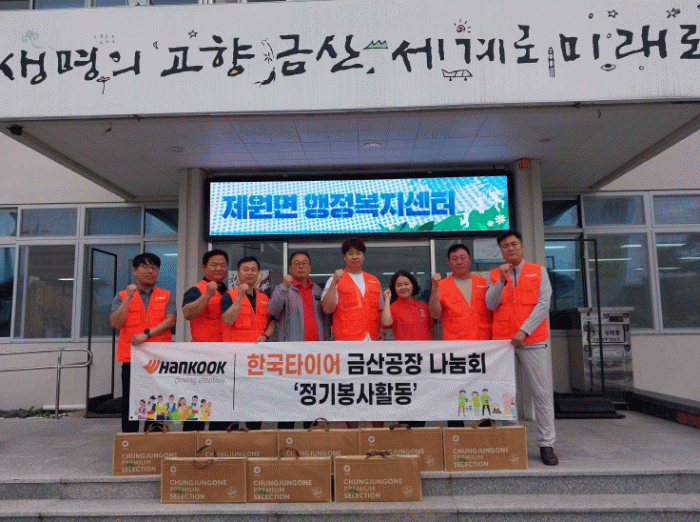 박지효 제원면장은 “민족 최대의 명절을 앞두고 나눔을 실천해 주신 한국타이어 금산공장 나눔회 주간조에 깊이 감사드린다”며 “따뜻한 손길이 어려운 이웃들에게 큰 위로와 희망이 될 것”이라고 전했다.