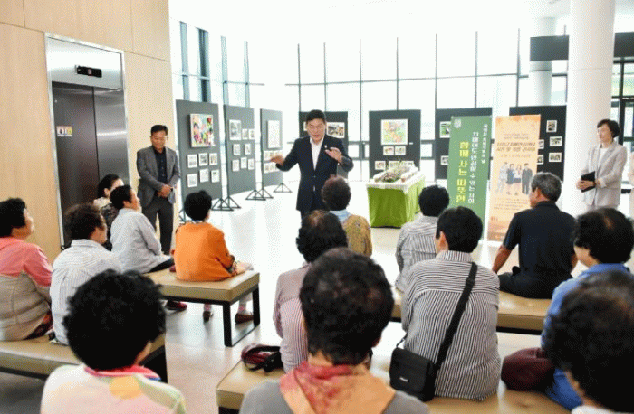 이번 전시는 치매안심마을 주민 60여 명이 참여해 어르신들의 나들이 사진과 마을에 대한 기억을 담은 협동화를 감상할 수 있다.