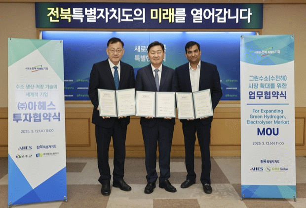 ㈜아헤스는 8월 말 GH2 Solar와의 합작으로 인도 현지에 약 1만 5,000평 규모의 수전해 설비 공장 착공에도 나섰다. 이를 통해 현지 시장 대응력을 높인다는 전략이다.
