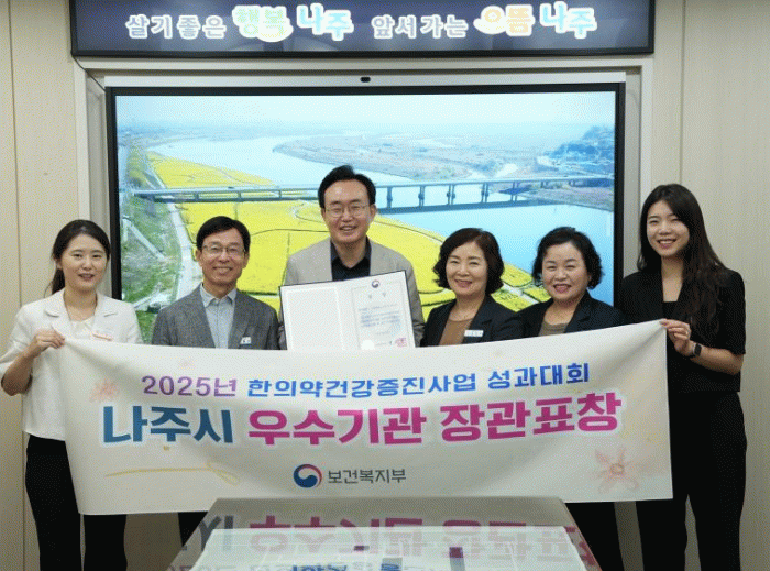 나주시는 지난 19일 서울 코엑스 소노펠리체컨벤션에서 열린 ‘2025년 한의약건강증진사업 성과대회’에서 보건복지부 장관 표창을 받았다고 23일 밝혔다.