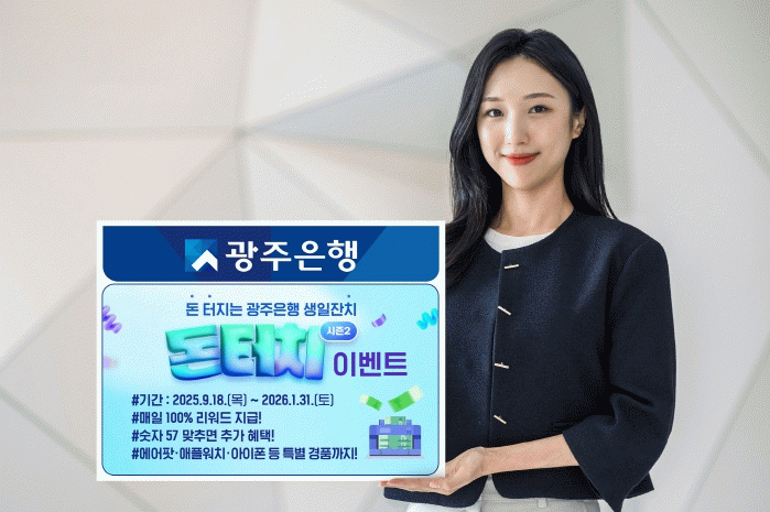 이벤트 참여는 ‘광주 와뱅크(APP)’에서 만 14세 이상이면 누구나 가능하며, 자세한 내용은 가까운 영업점을 방문하거나 광주 와뱅크, 고객센터(1600-4000)를 통해 확인 가능하다.
