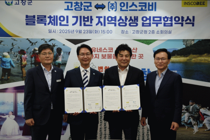 이날 협약식에는 심덕섭 고창군수와 유인수 ㈜인스코비 대표이사를 비롯해 양측 관계자 8여 명이 참석했다.