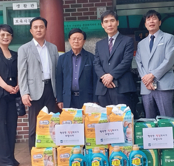 학생교육원 직원들은 이날 ‘화순 사랑의 집’을 방문해 성인 기저귀, 생필품 등 30만원 상당의 후원 물품을 전달했다.