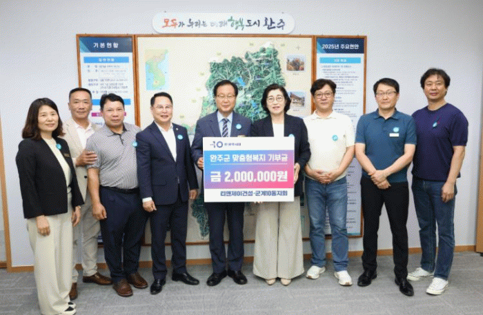 유희태 완주군수는 “지역 어르신들을 위해 마음을 모아주신 티앤제이건설㈜과 군계10동지회에 깊은 감사를 전한다”며 “완주군도 감사의 마음을 담아 민관 협력 사업을 적극적으로 이어가겠다.” 고 전했다.