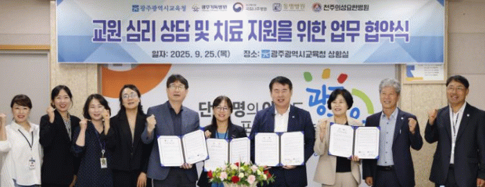 광주시교육청은 25일 본청 상황실에서 광주기독병원, 국립나주병원, 동명병원, 천주의 성요한병원 등 4곳과 ‘교원의 마음건강 증진을 위한 업무협약’(MOU)을 체결했다.