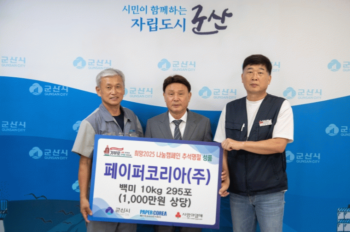 한편, 페이퍼코리아(주)는 2014년부터 매년 백미와 생필품 등을 꾸준히 지원하며 지역사회의 든든한 후원자로 자리매김하고 있다.