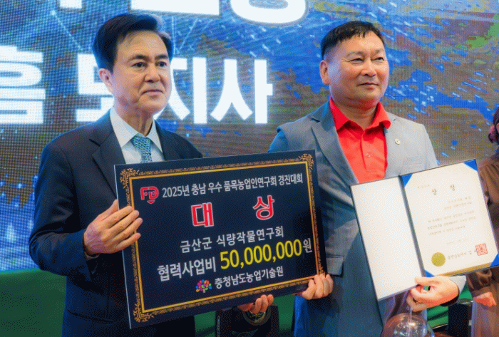 금산신량작물연구회 관계자는 “대상 수상은 연구회 회원 한 사람 한 사람의 노력이 모여 이뤄낸 결실”이라며 “앞으로도 금산군 농업이 더 많이 발전할 수 있도록 현장 중심의 연구와 실천을 이어가겠다”고 소감을 밝혔다.