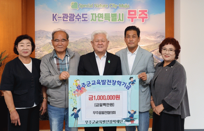 김성용 회장은 “오늘 장학금은 무주읍발전협의회 회원들이 ‘제29회 무주반딧불축제 천원 국수 부스’에서 직접 일하며 얻은 수익금 중 일부로, 우리 지역 학생들을 위해 쓰자는 마음을 모아 전달하게 됐다”라며 “앞으로도 무주군 인재 양성은 물론, 지역발전과 이웃 행복을 위한 일에 관심을 가지고 지속적으로 뒷받침해 나갈 것”이라고 밝혔다.