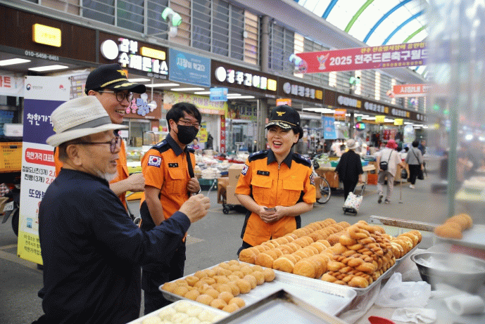 이오숙 본부장을 포함한 소방본부 직원들은 전통시장을 돌며 상인들과 대화를 나누고, 온누리상품권을 활용해 과일, 채소, 건어물 등 추석 명절에 필요한 물품을 구매했다.