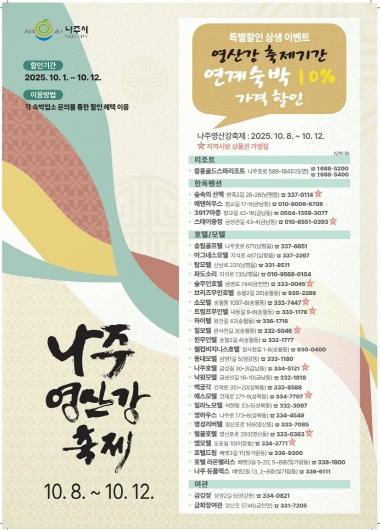 이번 나주시의 자체 이벤트와 더불어 문화체육관광부와 한국관광공사가 추진하는 ‘2025 하반기 숙박세일페스타’도 동시에 진행된다.