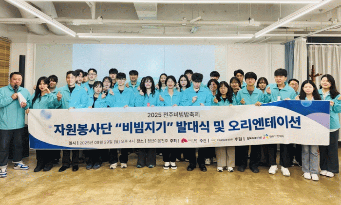전주시는 29일 청년이음전주에서 자원봉사자와 축제 관계자 등 70여 명이 참석한 가운데 ‘2025 전주비빔밥축제’ 비빔지기 발대식’을 가졌다.