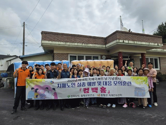 함평군은 30일 “군 보건소 치매안심센터와 함평경찰서, 함평소방서, 주민 등 관계자 40여 명이 지난 26일 학교면 곡창1리 경로당 일대에서 ‘치매노인 실종 예방 및 대응 모의훈련’을 성공적으로 마쳤다”고 밝혔다.