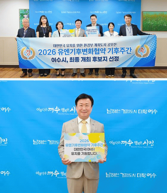한편 여수시는 지난 4월 세계지방정부협의회(ICLEI) 세계본부와 유엔기후변화협약 사무국을 방문해 COP33 유치 및 2026여수세계섬박람회 홍보와 더불어 기후주간 개최 필요성에 대한 의견을 나누는 등 적극적인 국제 협력 활동을 이어왔다.
