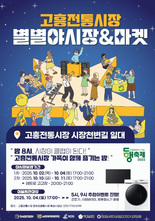 한편, ‘별별야시장’은 오는 10월 10부터 11일까지 2일간 고흥전통시장 천변 일원에서 한 차례 더 개최될 예정이다.