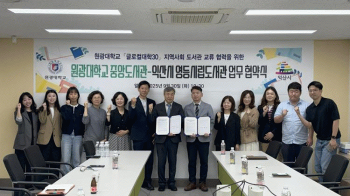 익산시 영등시립도서관과 원광대학교 중앙도서관은 30일 원광대학교 중앙도서관에서 '지역사회 도서관 교류 및 협력 업무협약'을 체결했다.