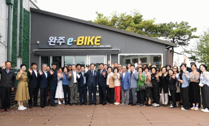 30일 완주군은 삼례 ‘쉬어가삼[례:]’에서 ‘e-BIKE 자전거 대여소’ 개소식을 열었다.