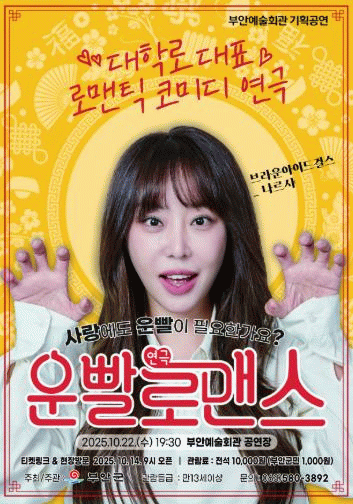 연극 ‘운빨로맨스’는 예측할 수 없는 운명과 사랑의 만남을 그린 로맨틱 코미디다.