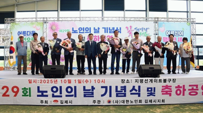 정성주 김제시장은 “노인의 날을 맞아 지역 어르신들의 노고를 위로하고 경로효친의 가치를 다시금 생각해 보는 뜻깊은 시간이 됐다”며 “앞으로도 어르신들이 건강하고 활기찬 노후를 보내실 수 있도록 다양한 노인복지정책을 추진해 나가겠다”고 밝혔다.