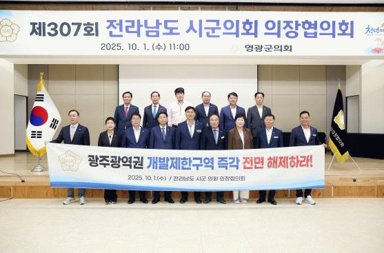 한편, 장성군의회는 지난 9월 열린 제371회 임시회에서“광주광역권 개발제한구역 전면 해제 건의문”을 채택한 바 있으며, 전라남도 시군 의회 의장협의회는 본 건의문을 국회, 국토교통부 등 관계 중앙부처에 전달할 예정이다.