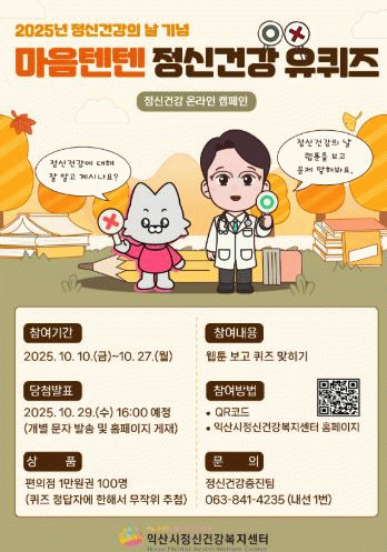 캠페인에 참여하려면 익산시정신건강복지센터 누리집에서 정신건강 관련 웹툰을 보고 문제를 풀면 된다.