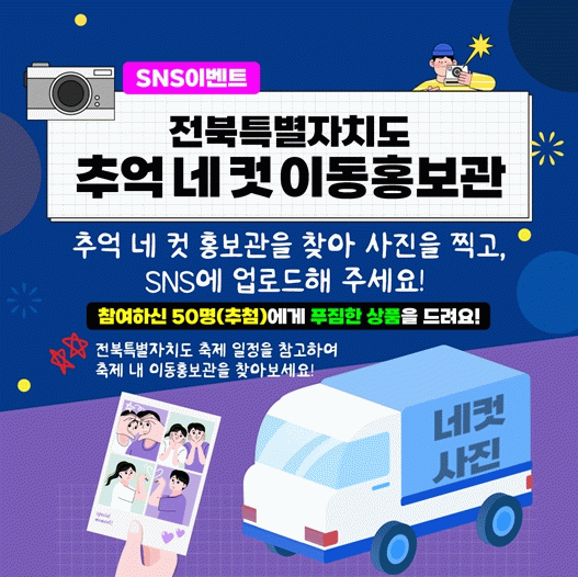 ‘추억 네 컷 이동홍보관’에서는 ▪정책·변화상 홍보 리플릿 배부 ▪전북 홍보영상 상영 ▪네 컷 사진 촬영 및 즉석 인화 ▪SNS 이벤트 등이 운영된다. 특히 젊은 층 사이에서 인기 있는 네 컷 사진을 활용해, MZ세대 친화적 소통 공간으로 꾸민 것이 특징이다.