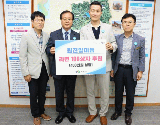 ㈜원진알미늄은 지난 설 명절에도 동일한 규모의 라면을 후원하는 등 꾸준히 나눔을 이어오며 지역사회에 온정을 나누고 있다.
