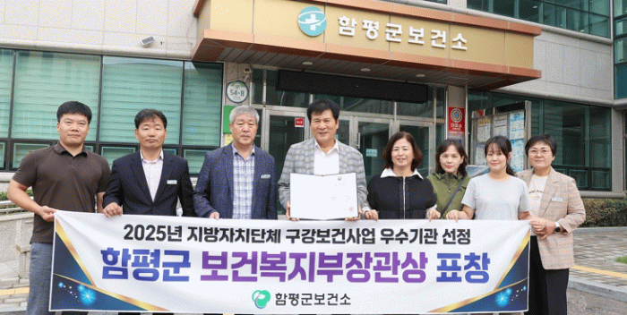 함평군은 함평은 생애주기별 맞춤형 구강 보건 정책과 취약계층 대상 실천형 사업 등 지역 특성에 맞춘 구강 보건 서비스로 높은 평가를 받아 전국 229개 기초지자체 중 시군구 부문 25개 우수기관 가운데 하나로 이름을 올렸다. 전남에서는 함평군과 완도군이 선정됐다.