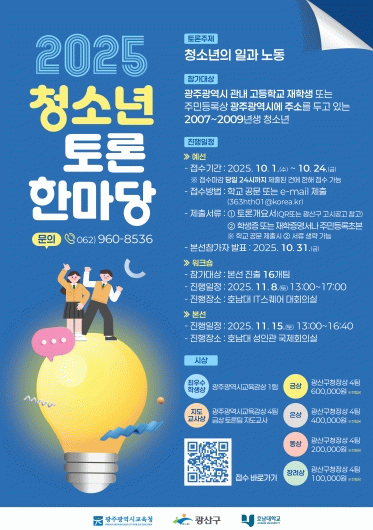 박병규 광산구청장은 “이번 토론한마당은 청소년이 직접 사회 문제를 토론하는 장으로 민주적 소통 역량을 키우는 중요한 기회”라며 “지역사회와 함께 청소년들이 미래의 주역으로 성장할 수 있도록 적극 지원하겠다”고 전했다.