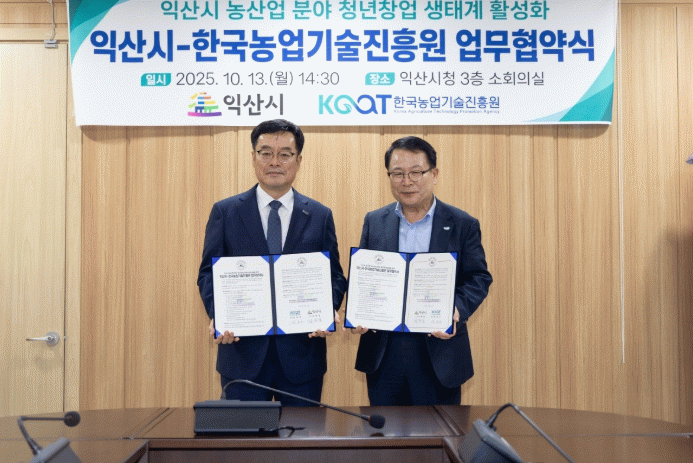 정헌율 시장은 "한국농업기술진흥원과의 협력은 농산업 분야에서 청년 창업가들이 새로운 기회를 찾고 지역 경제에 활력을 불어넣는 계기가 될 것"이라며 "청년들이 머물고 도전하는 창업 친화적 환경 조성에 최선을 다하겠다"고 전했다.