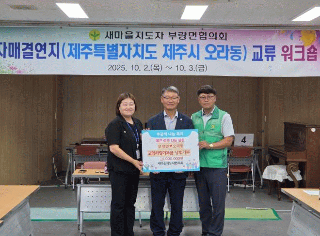 특히 이번 방문에서는 고향사랑기부제 상호 교차기부(부량면↔오라동 각 100만 원)를 진행하며 지역사랑 실천과 기부문화 확산에 앞장섰다.